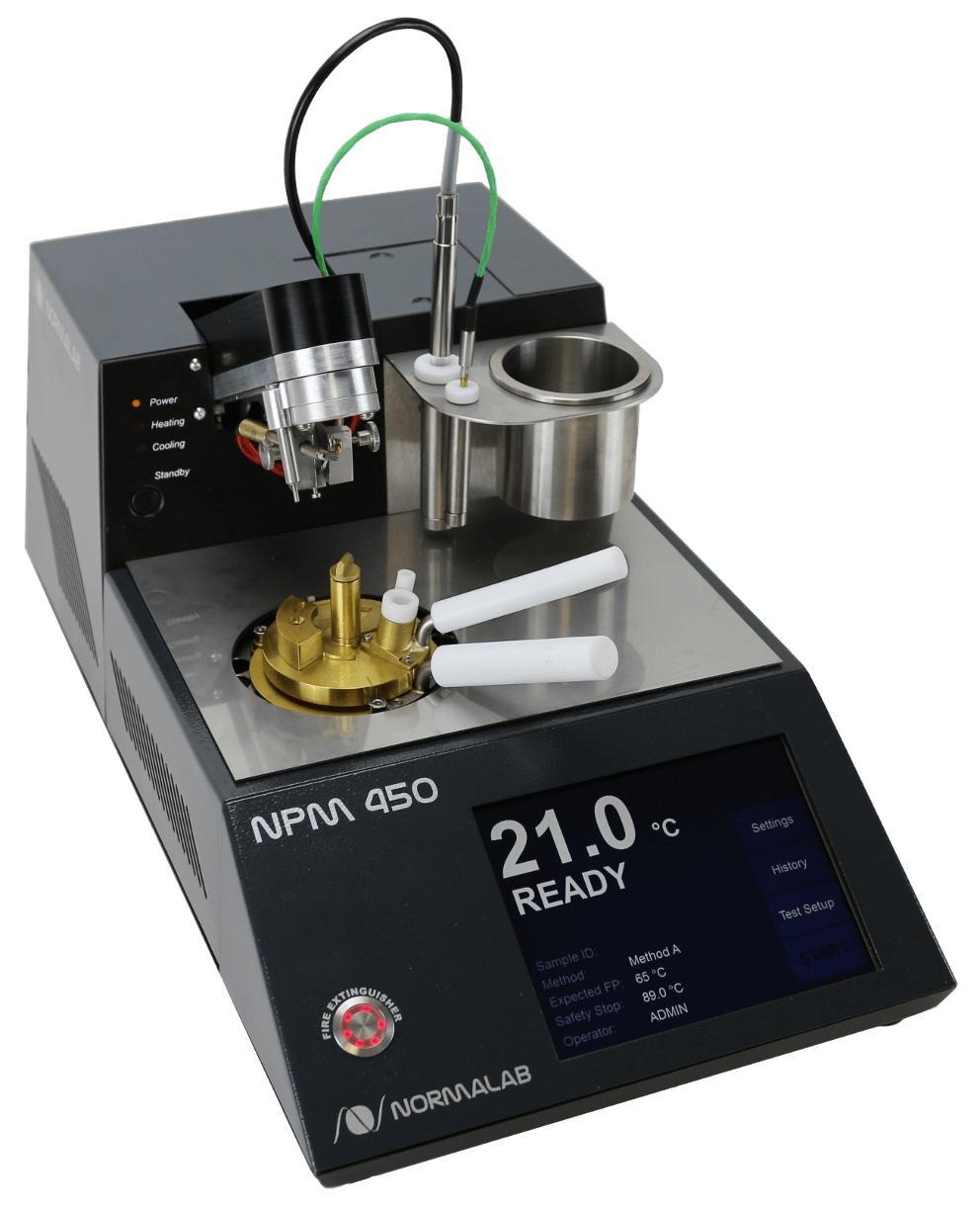 Efficient and compact, the NPM 450 is a fully automated Pensky-Martens Closed Cup Flash Point Tester with a combination of latest technologies. Due to the unique design, the NPM 450 offers you the best performance thanks to its predictive heating regulation and the air turbine enabling fast sample cooling after the test.
