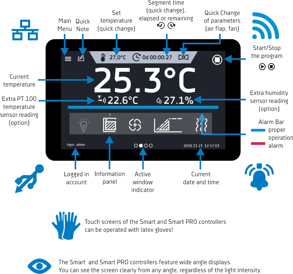 CL laboratory incubators are available with double door (external solid, internal glass). Optionally, the external door can be fitted with a vision window to allow observation of samples. In order to secure the cartridge, all doors are locked.The housing can be powder coated or made of structural stainless steel (linen). POL-EKO laboratory incubators are equipped with LAN port and USB port for efficient data transfer to external media. Laboratory incubators are distinguished by a microprocessor-based, large colour display available in Smart and Smart PRO options. Our offer includes incubators with natural or forced air circulation.